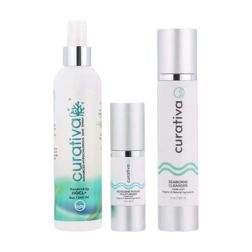 Not all HOCl is created equal. Curativa Bay uses stabilized hypochlorous acid formulated at skin-appropriate pH and concentration, designed specifically for skincare, not industrial sanitizing. The result is a formula that is effective, gentle, low-odor, and safe for routine use without harsh chemicals or drying alcohols.